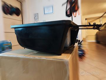 Box contenitore, E-box, Electronic box, gavone, portaoggetti, scatola multifunzione porta elettronica, per TTop barca, gommone o fisherman. Disponibile nero, spedizione in Italia assicurata e tracciabile inclusa nel prezzo, visibile su Bari, possibilità di ritiro in loco. Il box per T Top è realizzato in ABS ed è dotato di 4 anelli in alluminio ricavati dal pieno per montaggio su strutture in alluminio o acciaio inox AISI 316 L, con tubi fino a 51mm. Nell'imballo sono presenti guaine in gomma di varie misure per montare il box anche su tubolari da 2", 1,875", 1,75", 1,5" cioè praticamente ovunque, con strumenti di base e senza saldature. La bulloneria e una chiave a brugola sono inclusi. Sebbene nasca per T-Top Rodzero, Dolphin, Stryker e Fishmaster (con tubo di diametro fino a 51mm), può esser facilmente adattato e installato ovunque, in pochi minuti. Gli attacchi dei supporti di montaggio sono standard, tuttavia l'acquirente potrà facilmente adeguarli alla propria imbarcazione con l'aiuto di un tecnico qualificato. Lo sportello è in plexiglas nero lucido (simil vetro) con apertura verso l'alto a molla, serratura e due chiavi in dotazione. Possibilità di personalizzazione infinite: faretti a led incassati, altoparlanti Boss, Fusion o perfino un subwoofer, ecoscandaglio o chartplotter Garmin, Lowrance, Simrad, Raymarine, Humminbird, Helix, GT51, Furuno, radio VHF. Se sei un sub potrai occultare nel box le chiavi del gommone e gli effetti personali e scendere serenamente in apnea portandoti solo la chiave del box. Insomma, è indispensabile per completare, assieme ai portacanne, l'allestimento del T-Top della tua imbarcazione. E in barca, lo sappiamo, i gavoni non bastano mai... Comodissimo nelle giornate di drifting al tonno, vertical, bolentino, slow pitch, traina col vivo. Misure box 59x64x25 - Peso 7kg Misure imballo 68x68x29 - Peso 8kg