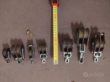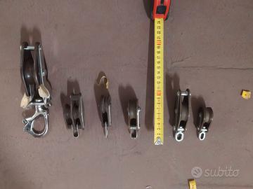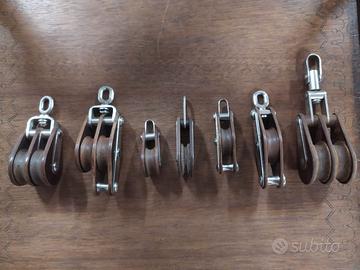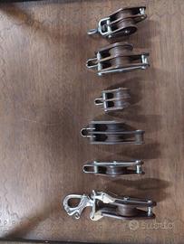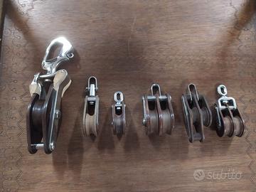 Vendo bozzelli nuovi (ancora in confezione) in tufnol fissi e girevoli varie dimensioni ad 1 o 2 pulegge per barche a vela. Prezzo a stock per circa 50 pezzi: 600€