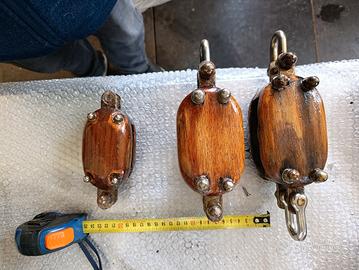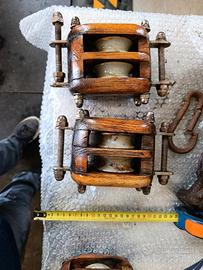 restaurati antichi bozzelli da veliero per esposizione euro 40 piccolo una via 60 grande 1 via 80 grande 2 vie 250 solo se acquistati in blocco intero