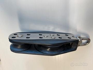 Violino Harken con due puleggie - Codice 1559 Diametro puleggia 76+51mm Diametro scotta max 14mm Diametro perno 8mm Massimo carico di lavoro 816 kg Carico di rottura 2268 kg Lunghezza 216mm