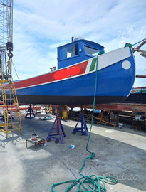 Anno di costruzione 1962, scafo in legno rivestito in vetroresina, lunghezza M. 10,00 larghezza M. 2,50, in buono stato, sempre fatte varie manutenzioni ordinarie e straordinarie, motore Valmet 78 HP turbo ore di moto 12.529, timoniera idraulica, due serbatoi in acciaio inox da Litri 350 l'uno.