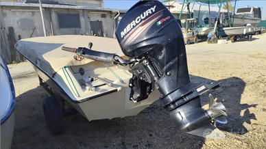 Barca completa di cuscineria, serbatoio acqua con doccetta, scaletta, tendalino sole, dotazione di bordo( ancora, parabordi, mezzomarinaio, 4 giunotti e salvagente anulare)