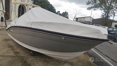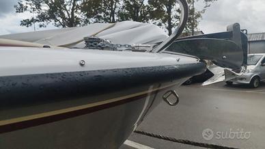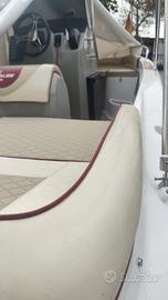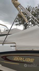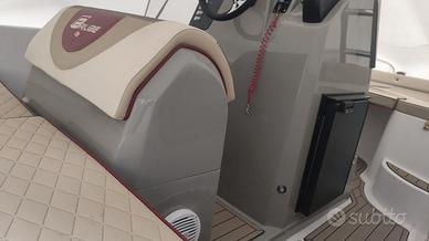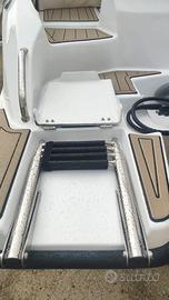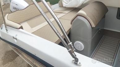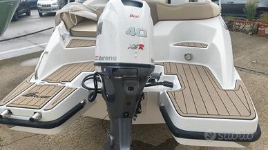Brube Factory vi presenta l'ammiraglia open della floatingdreams, Brube LagunaSecaGt2 in questa versione full optional. L'imbarcazione è disponibile in colorazione Pietra, consolle grigia con tappezzeria trapuntata beige con bordino rosso. La dotazione prevede il tendalino inox, il serbatoio benzina da 90lt, il serbatoio acqua con doccetta e pompa da 40lt, il telo a bottoni a copertura totale, la timoneria idraulica ultraflex, la cuscineria a cellula chiusa, il frigorifero da 42lt ad incasso, il rivestimento in gommadeck completo, la seconda batteria servizi con commutatore MKIII, impianto stereo Hertz marinizzato bluethoot, salpa ancora elettrico Italwich con ancora inox, luci di cortesia in pozzetto a led, luci di via e coronamento a led, scaletta di risalita a scomparsa. Motorzzata con Selva/Yamaha Murena Best efi XSR 40/80. L'imbarcazione non è mai andata in acqua, il motore ha zero ore.