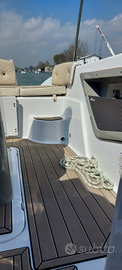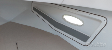 Di serie offriamo, impianto elettrico con luci di via e fonda completamente led, tappezzeria completa, scaletta di risalita inox a scomparsa, bitte di ormeggio, consolle di guida a 2 livelli.