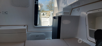 L'imbarcazione si può accessoriare con salpa ancora elettrico, wc marino, frigorifero da 42lt, serbatoio acqua con doccetta da 40lt, serbatoio benzina centrale da 90lt, tendalino sole in acciaio inox(omologato fino a 30 nodi), piano cottura con 1 fuoco e lavandino ad incasso nel cassero di guida, radio ad incasso, cartografici da 7 e 9 pollici, timoneria idraulica, VHF.