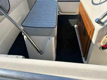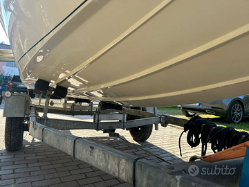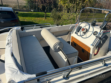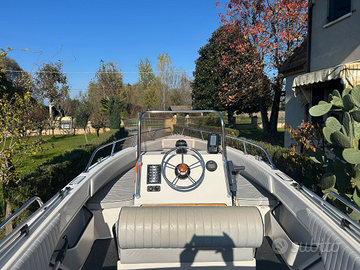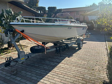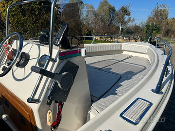 Brube Factory propone impeccabile Brube Sport 17 lunghezza 5.50mt X 1.85mt sempre rimessata al coperto, scafo senza mai antivegetativa, tientibene in acciaio inox, tappezzeria pari al nuovo, con plancette di poppa in teak e scaletta di risalita, timoneria monocavo nuova, serbatoio benzina 55lt, tendalino sole, moquette nautica grigia, strumentazione motore, ecoscandaglio, bussola, luci di via, pannello utenze, pompa di sentina automatica.