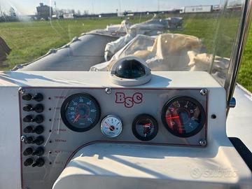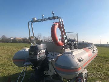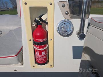 Musone di prua in acciaio inox, estintore in consolle, scaletta di risalita, pompa di sentina elettrica, anulare di salvataggio, ruota di scorta del rimorchio, gonfiatore manuale, luci di navigazione e mezzo marinaio.