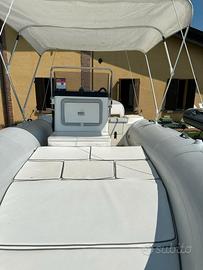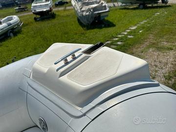 Gommone tenuto in maniera maniacale, completo di impianto idrico con serbatoio, autoclave e doccetta, cuscineria completa per un magnifico prendisole di prua e una seduta di guida ribaltabile per ottenere un secondo prendisole di poppa; Strumentazione analogica completa con RPM - contanodi - voltometro - indicatore trim - indicatore benzina e led di segnalazione Honda Marine per tensione batterie e temperatura olio. In consolle troviamo anche una pratica presa 12V, la bussola e le luci di navigazione. Vi aspettiamo presso la nostra sede a Modena Nord per visionarlo insieme e scoprire tutte le altre qualità di questo battello.