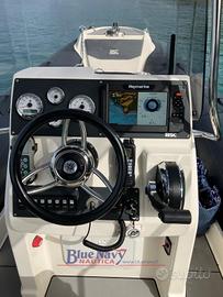 Vendesi il gommone usato BSC 62 EBONY (6,5mt fuoritutto) del 2022 motorizzato con fuoribordo Mercury 150hp del 2022 , con ca 200 ore di navigazione, sempre tagliandi Mercury, rimessaggio al coperto. Battello elegante, con armonioso aspetto dei tubolari con morbide finiture soft touch, cuscineria De Luxe e volante in pelle. Layout con ampi spazi di prendisole prua e di poppa adatti ad ospitare fino a 12 persone. Confortevole divanetto di poppa corredato di avvolgente poggiaschiena con struttura a doppio tubolare. Equipaggiato con cuscineria completa, Roll bar con tendalino, plancette di poppa, Teak sintetico, Copriconsol, telo copri spagliera poppa, Strumentazione Raimarine 9 pollici, ecc