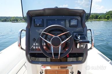 DATI PRINCIPALI Cantiere: BSC Modello: BSC 67 ELEGANCE Anno Costruzione: 2025 Lunghezza: 6,68 m Condizione: nuovo Tipologia: Hypalon Neoprene Codice: 845220 imbarcazione nuova, consegnata al cliente a fine aprile 2025. Disponibilità immediata!!!!!! Si informa che i dati comunicati dal proprietario sono ritenuti corretti ma non garantiti e non contrattuali. Le fotografie utilizzate, se indicato, possono essere di repertorio. MOTORI Potenza: 1 x 175 Hp Modello: Suzuki DF175APX Tipologia: Fuori Bordo DATI TECNICI Lunghezza fuori tutto: 6,75 m Larghezza: 2,96 m Dislocamento: 800 Kg Persone trasportabili: 12 Serbatoio carburante: 200 l Categoria di navigazione: C - Litoranea STRUMENTAZIONE ELETTRONICA DI NAVIGAZIONE Ecoscandaglio (con card), GPS (Raymarine Axiom 9" Plus cartografico). ALLESTIMENTO TECNICO E DI COPERTA Ancora (elettrica), 2 Batterie, Doccia esterna, Luci di cortesia, Pompa di sentina elettrica, Rollbar (inox con tela nera+ luci+ tromba), Scaletta da bagno, Tromba. CUCINA ED ELETTRODOMESTICI Frigorifero esterno. TAPPEZZERIE Cuscineria completa, Telo copriconsolle, Tendalino (in acciaio inox). NOTE ACCESSORI timoneria idraulica Seastar, cavo ricarica doppia batteria, rivestimento in EVA completo, telo trasporto, sospendite, asta ski, installazione moto motore leva elettronica, carena e tubolari Off White - cuscineria off white/Grey. Cuscineria completa a cellula chiusa, delfiniera di prua, consolle completa, sedile fronte console, schienale di poppa, plancetta di poppa, serbatoio carburante 140 lt, serbatoio acqua, tavolo di poppa/prendisole di poppa, pompa di sentina, pannello elettrico, impianto elettrico completo, blower, stacca batteria, presa USB in console, gonfiatore, scaletta di risalita in acciaio inox, ganci di traino, kit Nmea completo, prendisole prua, gonfiatore elettrico.