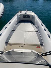 Gommone in ottime condizioni generali,8 metri,gommone e motore 2018,400 ore di moto,completo di tutto,motore tagliandato pronto per la stagione 2026,bassissimi consumi,doppi tendalini con coperture laterali,serbatoio raccolta acque nere(wc),ottima navigabilità,ottimi spazzi interni,portata 16 persone.