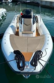 Questa unità, ( 8 ,30 X 3,05 ) del tutto pari al nuovo ( gommone e motore MERCURY DS 1 Verado 300 hp, 30 ore di moto, sono del maggio 2025) è riccamente accessoriata per sportive uscite giornaliere od anche per più impegnative crociere costiere : GPS/ ECO Raymarine Axiom, , Verricello elettrico con ancora inox, Tendalino esteso, frigorifero, WC elettrico con acque nere sotto consolle, cuscìnerie complete, Presa banchina 220 ....