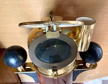 Antica chiesuola nautica originale con illuminazione interna per la lettura della bussola al buio, con la parte superiore in ottone fatta a forma di cupola apribile