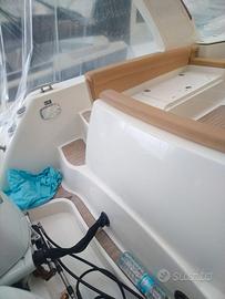 Nuovo tendalino prendisole con estensione a prua e teli laterali, offrendo copertura totale.