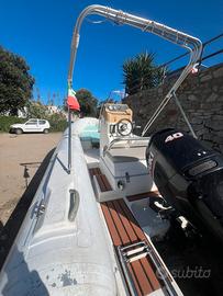 Vendo Gommone BWA 5.50m con motore Suzuki 40cv (anno 2021) tagliandato ogni anno. Pompa di sentina , autoclave per doccetta , serbatoio 30lt , stacca batterie ,Tendalino 4archi. Tubolari riverniciati (con apposita vernice ) .