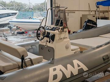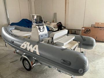 Gommone BWA 550 RENT Lunghezza: 5,50 m - Larghezza: 2,50 m - Portata: 10 persone - Omologazione CE Dotazioni standard: Musone di prua in VTR con rullo salpa ancora Consolle di guida con timoneria e volante Parabrezza protettivo Impianto elettrico con pannello utenze Tientibene e maniglie in acciaio inox Coperta autosvuotante Cuscineria completa per prua e sedute Prezzo solo gommone, no motore PREZZO RIBASSATO "FUORI TUTTO" Da € 18.000,00 a € 14.000,00 DISPONIBILE IN PRONTA CONSEGNA, FATTURABILE E FINANZIABILE.