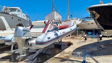 BWA Sevenfifty Platinum Line motorizzato con un fuoribordo Honda BF200, circa 500 ore di moto. Tutto del 2008, usato solo nella stagione estiva per due mesi all'anno, sempre rimessato al coperto. Il gommone monta i seguenti accessori: GPS, Radio, 2 tendalini parasole a 3 archi (prua e poppa), verricello elettrico, cuscineria nuova 2025, impianto doccia, plancette di poppa con comoda scaletta bagno, igloo, tavolo. Tubolare in buone condizioni. Regolarmente tagliandato. Visibile a Golfo Aranci.