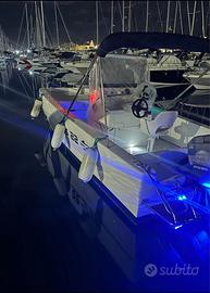 Vendo per inutilizzo Cigala e bertinetti Akis 22 7 metri F.T. autosvuotante con motore 225 2t mariner(mercury) 3.0 offshore anno 2000 già tagliandato. La barca è completa timoneria idraulica fino a 300 cv, cuscineria , stereo e casse ,tendalino in acciaio inox, led interni e subacquei, serbatoio in plastica 105 lt , doppia batteria con stacca batteria (ON-OFF). Vendita a parte di carrello omologato 16 qt. con argano elettrico. Disponibile a qualunque prova.