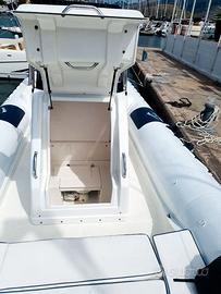 Il Nautica Cab Dorado 8.7 è un gommone ad alte prestazioni di 8,70 metri di lunghezza, rinomato per la sua combinazione tra prestazioni elevate e comfort. Costruito da Nautica Cab nel 2008, questo elegante mezzo presenta un baglio di 3,06 metri ed è caratterizzato da un design raffinato e uno scafo performante, che garantiscono un'esperienza di navigazione entusiasmante e confortevole anche in condizioni di mare difficili. Posizionato nel Mar Tirreno, Italia, il Dorado 8.7 è dotato di elettronica Garmin GPS Chartplotter e VHF, assicurando così la sua preparazione e disponibilità all'uso immediato, esemplificando uno stato eccellente con manutenzione ufficiale del motore.Battello carrellabile. Ottimo stato pronto boa. Motori EVINRUDE E TEC 2 x 200 ore 300 Velocità massima 40 kn Velocità di crociera 30 kn Consumi a crociera: 66 L/h N° Serbatoi 1 Materiale Serbatoi PVC Capacità Serbatoi 450 litri Capacità di acqua potabile 200 L "Dati ritenuti corretti, ma non contrattuali. La presente non costituisce, in nessun caso, documento contrattuale. Il prezzo esposto è da considerarsi al netto delle commissioni di Agenzia, da applicare sul valore finale di chiusura."