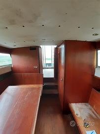 Lunghezza fuori tutto quasi 11 metri con spiaggetta di poppa, baglio massimo (larghezza) 3,30 da restaurare, con bagno completo, doppio serbatoio inox carburante 600 litri, doppio serbatoio acqua e acqua potabile