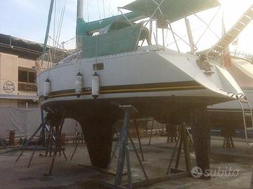 KIRIE Feeling 286 Special, anno '91, yanmar 18 HP, unico proprietario, bandiera italiana, natante esente immatricolazione, abitabile, 2 cabine doppie a poppa + 1a prua, locale bagno con lavabo e doccia con acqua calda, dinette in alcantara, 2 fuochi + forno a gas, auto pilota, whf, caricabatterie elettronico, passerella, salpa ancora, ancora e catena, spinnaker con calza manovre e tangone, compressore frigo elettrico, Carica batterie elettronico, radio VHF, zattera autogonfiabile e salvagenti, doccetta esterna, unghia di poppa maggiorata, windex, log, profondimetro, luci coperta, serbatoi acqua dolce di serie lt 60+ 2 supplementari, Lasy ag lasy jack e bordatura vele anti UV, cappottina, bimini, tormentina, bompresso estraibile, tutte le manovre rinviate a pozzetto, pompa sentina automatica elettrica + manuale, allarme esterno di acqua a bordo, bussola, golfari x life line, tavoletta porta f.b., carenaggio, 8 parabordi nuovi. Omologata per 7 persone, categoria 2 Francese.