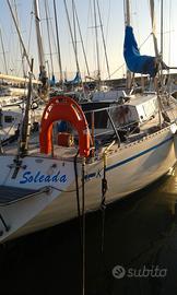 Vendo Barca a vela modello SOLEADA 34 del 1979 causa inutilizzo. Misure 10,40 mt x 330 mt. Buone condizioni pronta alla boa, dotata di salpancore elettrico, avvolgifiocco Furlex , motore BETAMARINE 25 cv (500 ore di moto), completa di vele (2 Genoa, Spy, Gennaker, Randa, Tormentina). Prezzo trattabile comprensivo di subentro posto barca (vantaggioso). Sono velista appassionato e vendo causa inutilizzo. Contattare via mail a mauromeini@gmail.com. Il