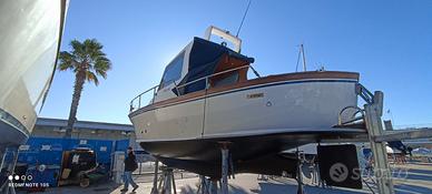 vendo per cambio tipologia barca da pesca tipo Sciallino m 8,5 x 2,5 con carena appena fatta boccola asse sostituita a dicembre 25 riverniciata a nuovo le fiancate come da foto settembre 25 motore entrobordo diesel Lombardini 90 CV consumi 5 lt/h a 1800 giri 7 kn velocità max 10 kn e fuoribordo di rispetto da 9,9 CV dotazioni di sicurezza bagno elettrico, cabina con 2 materassi, tanti gavoni serbatoio acqua nuovo in plastica morbida serbatoio gasolio da 90 lt se interessati prezzo trattabile per info invio altre foto .