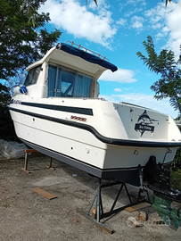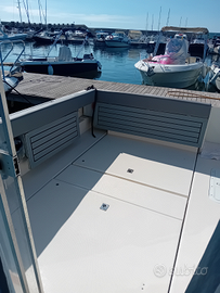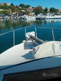 Rio cabin fisch motorizzata con mercruiser 1.7 diesel 120hp istallato nel 2021 velocità max 25 nodi, consumi bassissimi, piede alpha one 2° generazione, tutto perfettamente funzionante, accessoriato con 2 vasche pescato, 2 vasche vivo, 8 portacanne in acciaio, flaps elettrici, doccia, wc, frigo 60lt, tendalino, scaletta in pancetta, autoclave, 2 batterie, 1 sentina automatica, 3 sentine manuale, serbatoio gasolio in acciaio, serbatoio acqua dolce da 80 litri.