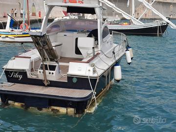 È provvista di verricello elettrico con ancora Bruce e catena da 50 mt. in acciaio zincato, c'è anche una seconda ancora di poppa; entrambe sono provviste di salva ancora per il recupero dell'ancora incagliaia. All'interno, 2 cabine separate con letti matrimoniali. Toelette completa con porta, water marino e lavello. Cucina a gas inox a 2 fuochi, bombola da 5 kg, lavello inox e frigorifero. Cuscinerie, spalliere e poggiatesta in ecopelle bianca. Specchio di poppa con 2 panche in ecopelle bianca e 2 portacanne inox. Consolle rifatta totalmente con volante, radio Boss Marine con mp3. Strumentazioni nuove, Ecoscandaglio/Sonar Raymarine mod. Dragon a colori , GPS, manometri vari. Il cockpit ha tutta la strumentazione nuova compreso il comando a due leve per l'invertitore dei due motori, anche la poltrona guida è nuova ed in ecopelle bianca. Vi è anche la predisposizione per il montaggio come da foto di 2 pannelli solari da 200 Watt cad. col regolatore ed inverter per caricare le batterie. L'impianto è un OMAGGIO all'acquirente, resta solo il montaggio. C'è l'allaccio alla colonnina del porto per l'energia elettrica, la doccia esterna e vi è anche la predisposizione per il montaggio dell'elica di prua che facilita il movimento in porto, scaletta da bagno,serbatoio carburante da 300 lt. ed acqua da 120 lt. La barca si trova al coperto in cantiere a Tricase. Per visionatura fissare un appuntamento telefonando telefonando o scrivendo su Whatsapp al mio n°3911225424. Il prezzo: siamo in periodo di SALDI ed oltre alla trattabilità intendo ridurre del 10% il prezzo vecchio. Prego solo di non essere contattato da chi non è interessato.
