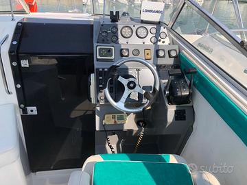 Barca americana in buonissime condizioni, modello 256 versione speciale con 2 motori benzina Volvo aq151 dai consumi molto contenuti, roll bar , pozzetto con 2 divanetti, bagno con porta, cucina,frigo, 2 cabine,doccia interna ed esterna , tv, stereo , cuscneria nuova a prua , tendalino chiusura totale nuovo, 3 batterie nuove, GPS, bussola, vhf, ancora elettrica etc. La barca ha i motori completamente rifatti a zero ore da imbarcare. Prezzo poco trattabile in quanto spesi 5000 per motori ed altri 2000 per cuscineria e tendalino a chiusura totale. Per info 328 9760142