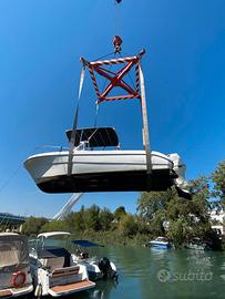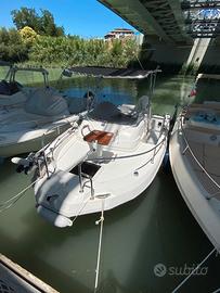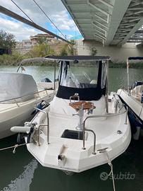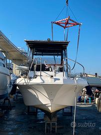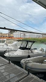 t top in acciaio inox e copertura totale in crystal, presa a amare, pompe lavaggio ponte, vasca del vivo, portacanne acciaio inox sardamatic bullonati con piastra passante. luci di via, luci di cortesia esterne ed interne. ecoscandaglio furuno gp 1971f con sonda in bronzo passante b60 Airmar. impianto con doppia batteria e stacca batterie a due vie, impianto doccia, scaletta bagno, flap elettronici, radio icom, cabina con 2 posti letto, wc chimico.