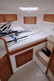 Fisherman dalle impareggiabili qualita’ costruttive, eccellente tenuta di mare, ideale per la pesca anche a grande distanza dalla costa . Al grande pozzetto di poppa libero e spazioso questà unità aggiunge il robusto Tuna Tower , divergenti e la comoda plancia di poppa estesa . Al massimo la configurazione di allestimento con : Generatore, Aria Condizionata, Elica di Prua, Doppio Plotter GPS/ECO Garmin, Radar, Autopilota, VHF, Flaps, Vasche per vivo e pescato, Circuito 220 con caricabatteria , WC in locale separato con serbatoio acque nere, doppio frigorifero, Teli di chiusura T . Top, Cuscinerie complete . Imbarcazione costruita nel 2009 e spinta da due Cat C7 da 460 hp con circa 1580 ore moto . RINA sc. 2030 Rimessata ogni stagione in capannone per 5 mesi. A terra visibile con breve preavviso . NB Prezzo proposto al netto delle spese di intermediazione