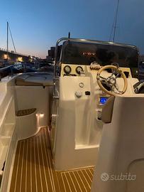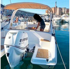 La barca è dotata di un motore EVINRUDE 250cv con 400h di moto (tagliando completo giugno 2025), doppia batteria, salpa ancora elettrico, pompe di sentina automatiche, impianto audio, doccia esterna, tendalino, GPS cartografico.