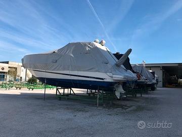 Cagnaro in pvc termosaldato con prese d'aria e porta con cerniere ,completo di solida struttura in legno e pesi con sabbia perimetrali, adatto per imbarcazione Open Cranchi Smeraldo 36 e 37 o simili per dimensioni e caratteristiche