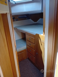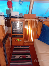 Cabina di prua con ben 3 posti letto, cabina ospiti con 2 letti a castello, dinett con divano allargato per ulteriore posto letto, cucina con fuochi a gas, 2 frigoriferi, climatizzatore, GPS, ecoscandaglio, radar e pilota automatico.