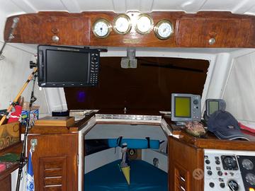 Strumentazione: pilota automatico, gps, radar, 2 ecoscandagli cartografici, bussola, stazione meteo, CB, VHF, flaps idraulici, doppio serbatoio inox, doppie batterie, doppie pompe di sentina automatiche, doppio strumento temperatura motore, sedia di combattimento, porta canne da traina, roll bar originale a torretta, invasatura da rimessaggio originale, wc chimico, zattera 8 persone in contenitore rigido, tendalino parasole, doppia copertura per il pozzetto e oscuranti per vetri. Dotazioni di bordo di sicurezza. Anti vegetativa appena rifatta. Prova in mare con proprio meccanico di fiducia.