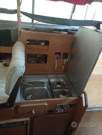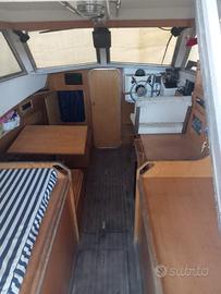 Accessori: Plancetta poppa VTR con scaletta amovibile, Ecoscandaglio, radar, pilota automatico, 3 pompe sentina automatiche e 1 manuale, impianto stereo, TV, Frigorifero, cucina a gas con lavello, bagno in cabina, Doccia acqua dolce, pompa lavaggio con acqua di mare, tendalino fisso su pozzetto, impianto solare per ricarica doppia batterie, 3 batterie nuove, inverter 220, impianto 220 da banchina, caricabatterie supplementare integrato 220, salpa ancora con 50 metri di catena, spugne cuscineria nuove.