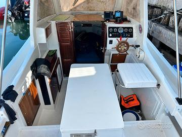 Barca acquistata nel 2022 dal cantiere Leonard di porto viro con regolare fattura. Refit totale 2018 motore portato azero ore attualmente 350 ore di moto Aifo 130 cv sbarcato e riverniciato e tagliandato in tutte le sue parti nel 2024 scanbiatori ecc ecc chiusura totale come da foto tendalino nuovo barca attrezzata per la pesca qualsiasi prova visibile in acqua a fiumicino
