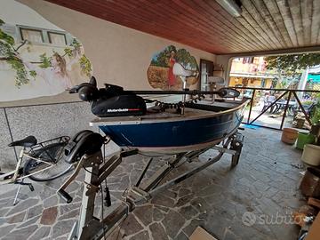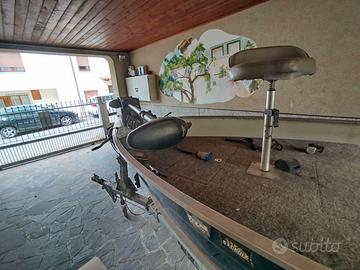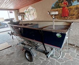 Canadian 372 con carrello ellebi, motore wireless motor guide e motore Yamaha 15 CV,coppia di stand up e una poltroncina. compreso un altro motore elettrico minnkota a corda. Pianalatura in compensato marino da 18 mm smontabile. gavoni anteriori e posteriori con livewell cono pompa di ricircolo. Pompa di sentina posteriore. No batteria.Deriva posteriore in metallo. Carrello da collaudare. Vendo per inutilizzo