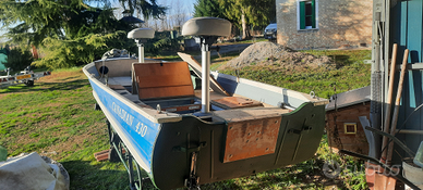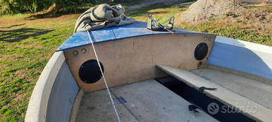 Vendo per inutilizzo, barca a ricovero da 2 anni, canadian paiolata con moquette con grandi gavoni protetti da tappetini in moquette verde . Impianto elettrico rifatto completamente con luci di via a led,illuminazione interna led verde, faro di profondità, casse bluetooth, presa usb , indicatore batteria, predisposizione alimentazione motore di prua protetto da magnetotermico, staccabatteria e batteria. Portacanne ad incasso. Motore evinrude 15 cv totalmente rifatto 2 anni fa e mai utilizzato. Ancora in rodaggio. Con telo di copertura. Fantastica per spinning in laguna alla spigola/branzino ,per fiume a lucci e anche bass boat. Seggiolini estraibili con supporto ad incasso ,per avere tutta la barca libera. Barca leggerissima, circa 90 kg, ottima per essere tenuta su carrello ed usata su qualsiasi corso d' acqua. Possibilità di dividere barca (1400 euro) da motore con serbatoio ( 900 euro).