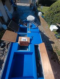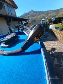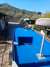 Vendo Canadian 430 fatta l'anno scorso da 0 intelaiatura in alluminio pianale e gavoni fatti con compensato 2 gavoni centrali grossi per riporci l'attrezzatura 1 gavone per le canne fino a 2.40mt fino a 20 ci entrano comode vasca del vivo 50lt con pompa di entrata/uscita e ricircolo 1 gavone per le batterie e 1 a prua marino moquette nautica completa di impianto elettrico con stacca batteria generale. Verniciata in carrozzeria con vernice poliuretanica viola. insieme alla barca do Minnkota Edge 55lb sempre in garanzia 2 stand up Carello ellebi anch'esso messo a nuovo 1 anno fa con ruote cuscinetti pistone ammortizzatori freni e rulli. modello con portata 395 kg e basculante Completo di revisione scade nel 2027 Fari stagni fissi fatti 1 mese fa In più do anche la barra con i fari originali