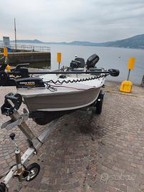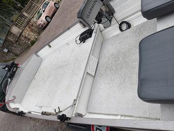 vendo Canadian 430 allestimento fishing _3 gavoni a prua di cui uno per le dotazioni di bordo 1 per le batterie del motore elettrico e uno per gli accessori porta pesca _due gavoni a poppa uno per il serbatoio fuoribordo e uno per la batteria del fuoribordo _motore elettrico Minnkota Power drive 45 _1 batteria al litio 100 ah _fuoribordo SUZUKI DF15 con accensione elettrica e manuale (già tagliandato,fatture alla mano) _carrello appena revisionato dicembre 2025(messo a nuovo!) _telo fatto su misura tutto al prezzo di 6850 eventualmente offro a parte _ echomap UHD 2 92sv (con scatola,parasole e cover proteggi schermo) con sonda gt 54 prezzo da concordare _ porta canne preso da Bolsena yatching _motore selva 8 CV 4 tempi