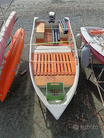 Canadian 434 sponde alte, paiolata e gavonata, completa di scalmi e remi, eventuale motore evinrude 15 cv 2 tempi da revisionare, serbatoio e prendisole. Barca molto veloce, in due si raggiungono i 16/18 nodi. Se interessati consolle completa di scatola guida e volante da montare. Solo barca e consolle (consolle in regalo) Eu