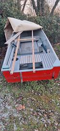 Scafo Canadian 437, sponda alta, fatta riverniciare circa 4 anni fa da ditta specializzata, assenza di infiltrazioni. Stabile e leggera, ottima sia per impego ad elettrico, che con motore a scoppio in acque più importanti. Internamente realizzata parziale pianalatura, leggerissima, con profili e pannelli di alluminio rivestiti con tappetino in EVA ad alta densità, antiscivolo ed antirumore. La panca centrale è stata modificata inserendo dei profili di rinforzo metallici inferiori, in modo da rendere il pozzetto centrale continuo da poppa a prua, in stile pike boat, col risultato di avere un pozzetto più sicuro ed agevole anche in caso di onda o forte vento. Realizzato impianto elettrico per alimentazione ecoscandaglio ed illuminazione interna dello scafo. Prezzo per il solo scafo: prezzo 1'900 € trattabili.