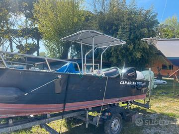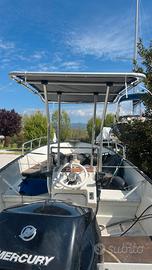 barca canadian 560 in alluminio con MOTORE MERCURY 40cv 3 cilindri del 2022 con pochissime ore di navigazione- consumi bassissimi - barca leggera e veloce, ampiamente attrezzata con grande prendisole di prua, consolle di comando .