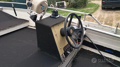 usata ,perfettamente funzionante , semi pianalata, pilotina, remi in alluminio, serbatoio da 15 lt, faro di profondità, due giubotti salvagente ancora cime d'ancora, batteria nuova, , quadro elettrico 6 comandi, pompa di sentina automatica o manuale , due portacanne per traina , no motore motore 15 cv 2T ? 600,00