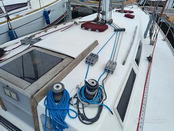 Bellissima CANADOS 37 anno 1981 lunghezza 11,28 m larghezza 3,68 m pescaggio 1,98 m motore VETUS 20/40 hp - 4 cilindri revisione straordinaria 2026 linea d'asse - Elica 3 pale fisse lavaggio serbatoio gasolio 90 lt Randa con carrelli Harken - Fiocco - Spi con attrezzatura - Tmt sartiame del 2018 4 winches ST (di cui due nuovi) + 4 winches Rullafiocco nuovo Albero Canclini riverniciato bianco vele recenti Strallo prua e patera Lazy Jack Easy Bag Copri timone e copri passauomo Ampia dinette con tavolo centrale e due divanetti frontali la dinette è trasformabile per 2 letti a castello sulla sinistra e cuccetta doppia a dritta cabina di prua con letto matrimoniale bagno a poppavia tavolo da carteggio sulla sinistra cucina attrezzata a dritta cuccettone a poppavia legni in mogano molto ben mantenuti Tappezzeria nuova plexiglass dei passauomo nuovi Bimini Nuovo Opera Morta Riverniciata Condizioni Generali Molto Buone + provvigione agenzia