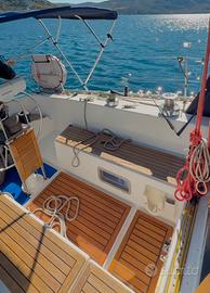 Carena, prese a mare in bronzo, boccola e cuffia asse sostituite ad ottobre 2023, randa con carrelli, fascia UV Genoa sostituita 2022, paterazzo idraulico, impianto elettrico nuovo, 3 batterie agosto 2024, sentina agosto 2024, Motore Nanni-Mercedes, 7 posti letto, sostituito scambiatore di calore e pompa giugno 2025, tagliando motore luglio 2025, verricello con 50 mt catena e telecomando, spray-hood e tendalino tempotest, doccia int ed ext, 6 winch, luci led in pozzetto. Lazy jack, lazy bag, wang rigido, cuscineria esterna, panchette in iroko 2023, pozzetto in iroko febbraio 2025, sostituita marmitta inox, elica a pale abbattibili, gps raymarine, strumenti tacktick raymarine, autopilota, frigo e cucina con forno, passerella alluminio, Carena agosto 2025. Rina scad. 2026, gavone verricello rinforzato agosto 2024. Vendo a prezzo ribassato per cambio categoria. Accetto permuta gommone o auto d'epoca.