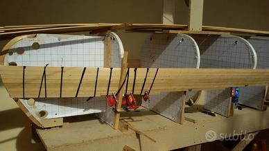 vendo canoa canadese metri 4,95 auto costruita, realizzata tutta in legno con il metodo strip planking, peso circa Kg 37.