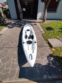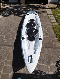 Vendo kayak da pesca biposto in ottime condizioni, modello Big Mama lungo 380 cm. Adatto a 2 adulti + 1 bambino. Completo di 2 pagaie, 2 seggiolini, 4 portacanne, 2 gavoni e ruote integrate per facile trasporto. Colore bianco. Stabile e ideale per pesca o escursioni. Usato solo due volte, vendo a malincuore causa inutilizzo e trasferimento.